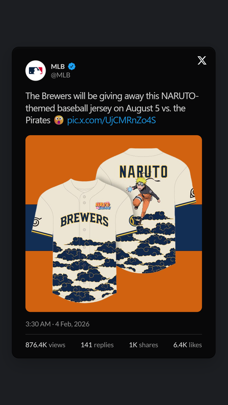 標題[閒聊] MLB 8月5日送火影忍者主題棒球衫