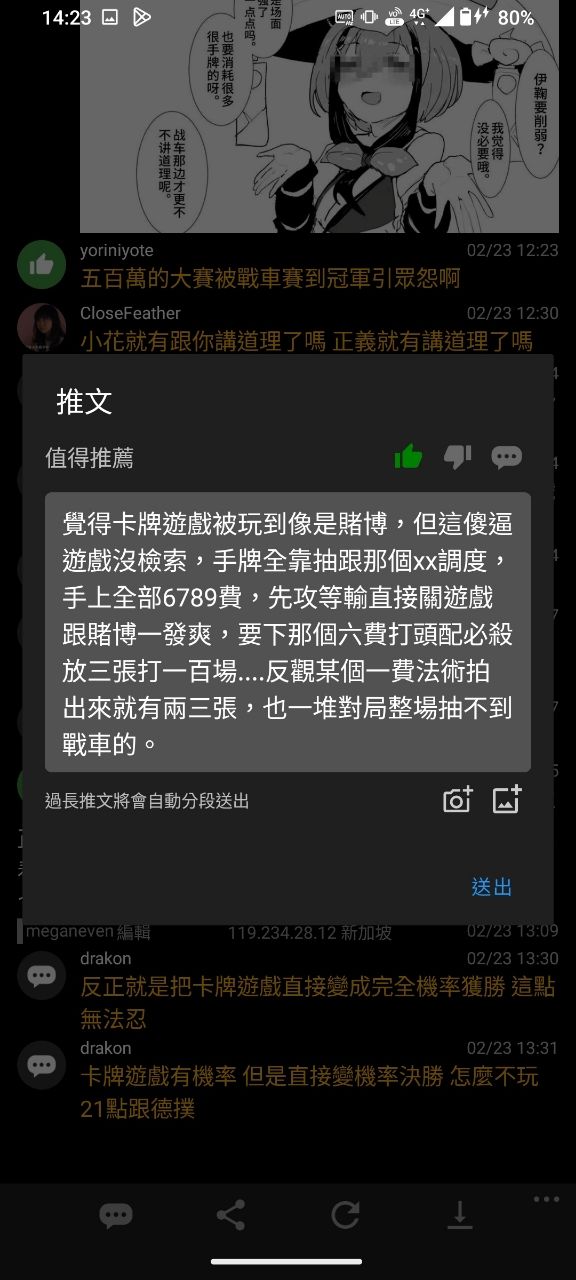 → drakon: 卡牌遊戲有機率 但是直接變機率決勝 怎麼不玩21點跟德撲 02/23 13:31