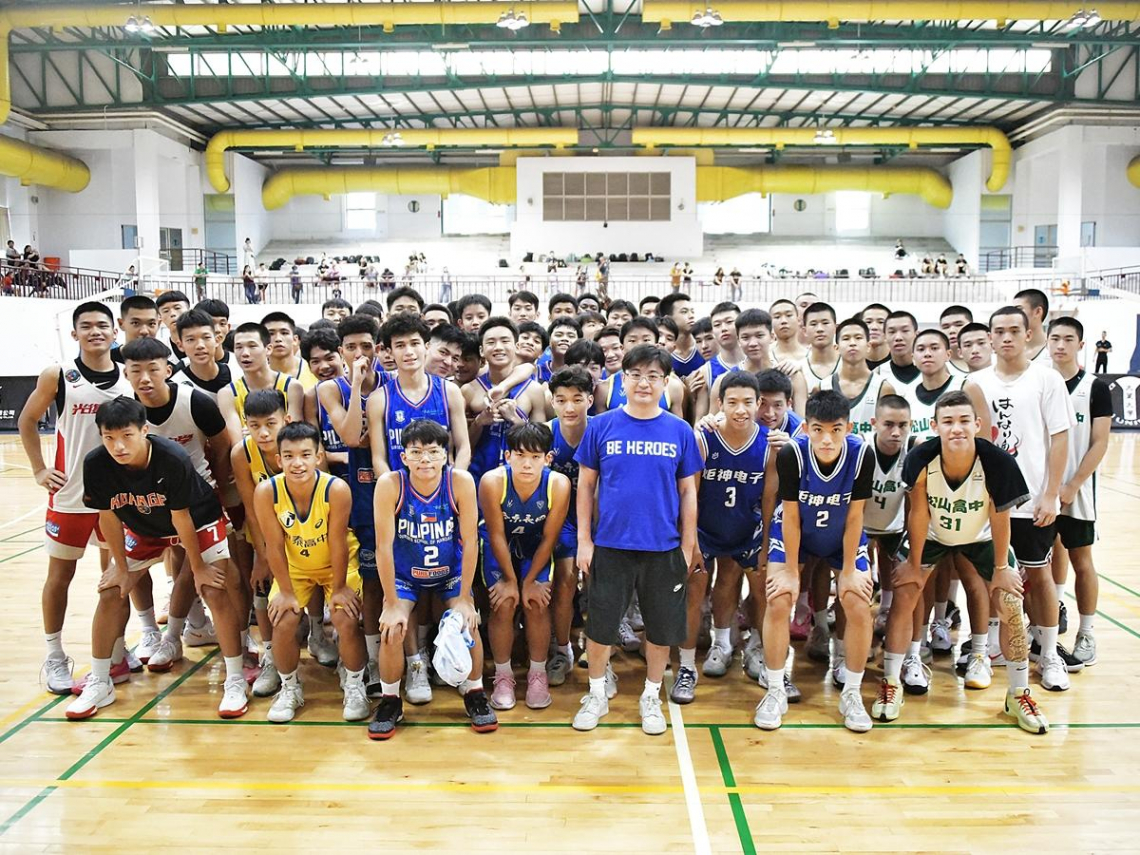 彰化縣議長謝典林(前排右六、藍色T恤)出席籃球交流賽事,與來自全台及國際青年球員合影,展現對青少年體育發展的重視與支持。透過實際參與基層賽事,謝典林推動在地運動風氣,串聯國際交流能量,為彰化打造活力十足的運動城市