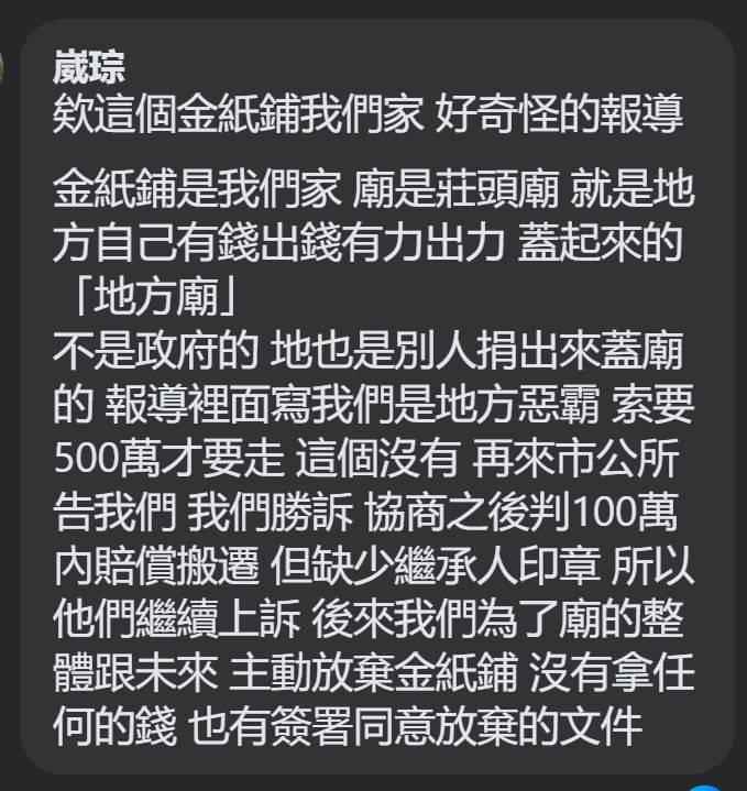→ ccdg: 新聞說金紙舖一直有交錢給振興社,但振興社是擁有南瑤宮產權 02/04 18:15