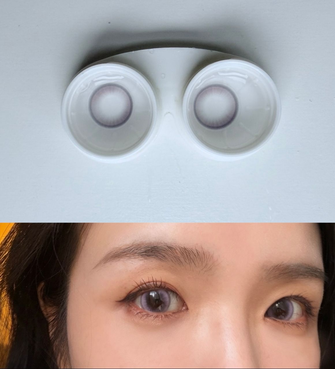 那種紫是非常柔和的,跟瞳孔融合後會變得很像原本眼球透出來的色澤,溫柔感爆棚!