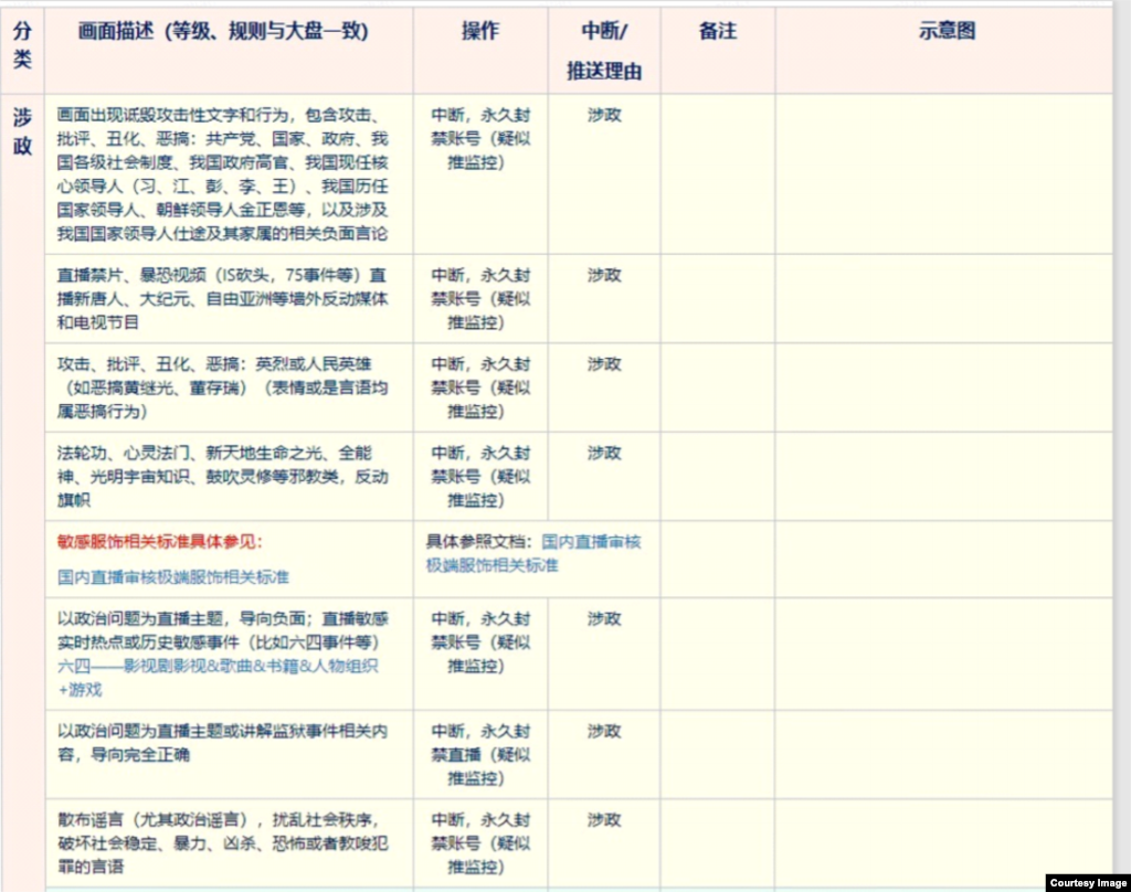 標準,並將政治審查放在首位,其中第一條是:「畫面中出現攻擊、醜化、惡搞共產黨、