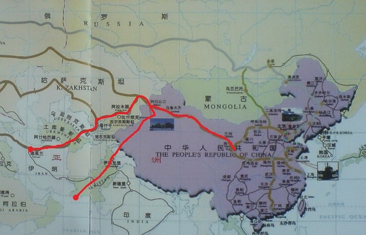 一條是德黑蘭-土庫曼-烏茲別克-哈薩克-阿拉山口