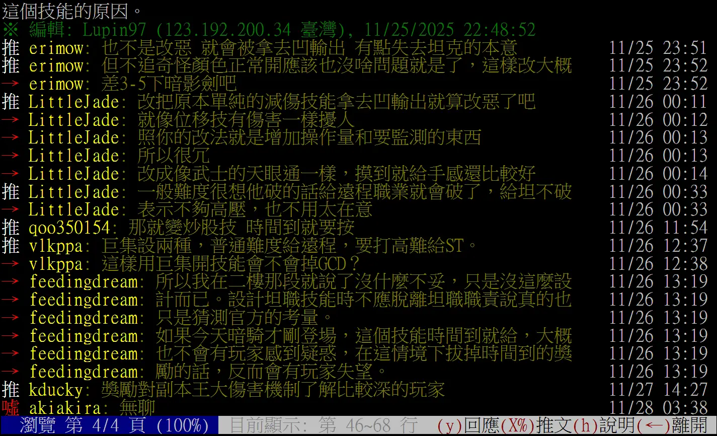 → Lupin97: 12月2日回頭看了一下留言並刪除無意義亂板推文,現在12月 12/15 19:48