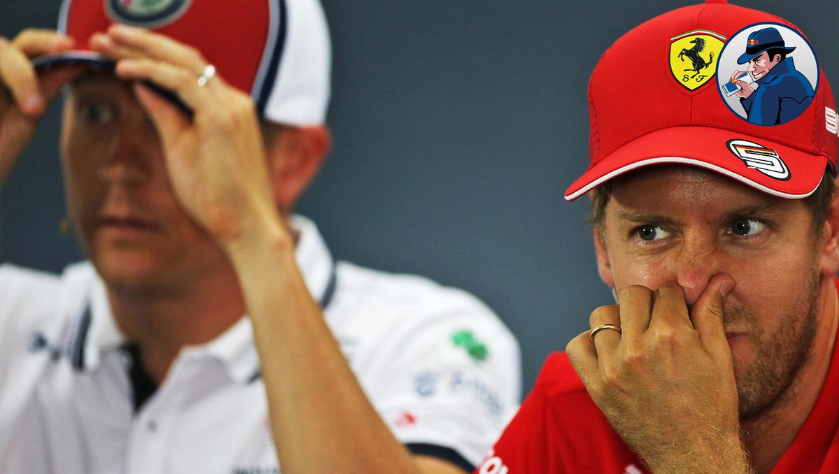 Vettel:"你不要太過分囉,差點把Kimi的帽子給吹掀了,嗚嘔。"