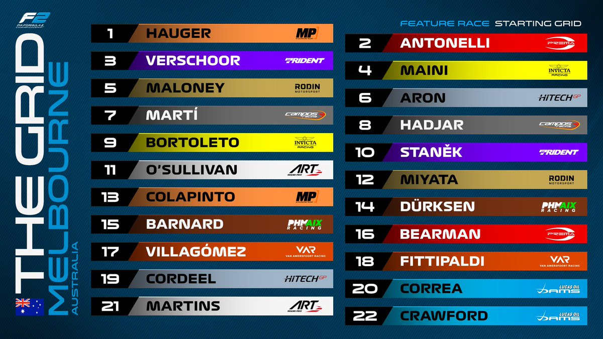 * 週六 Hadjar 起跑事故被罰一事,賽後Campos車隊對賽會提出複查申請