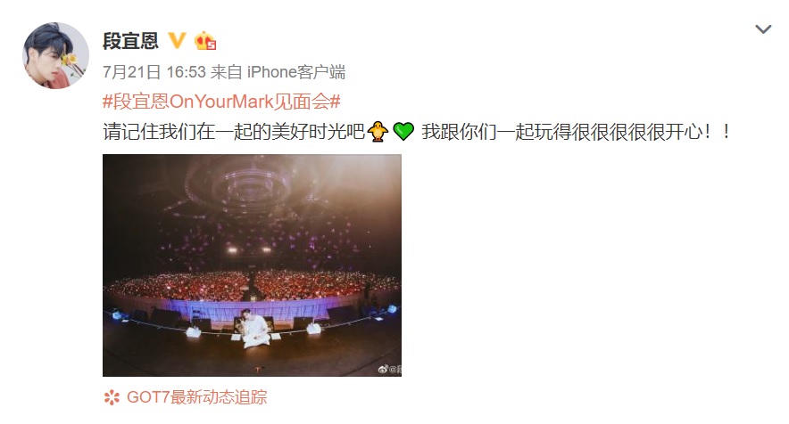 → wadija: 段宜恩微博:#段宜恩OnYourMark見面會# 請記住我們在一起 07/22 00:52