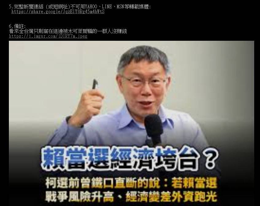 ‧ 簽名檔不得使用政治人物照片含改圖,一律刪文併政問警告水桶七天。
