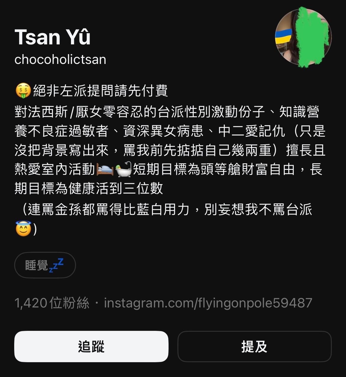 我點進去chocoholictsan網友的個人資料