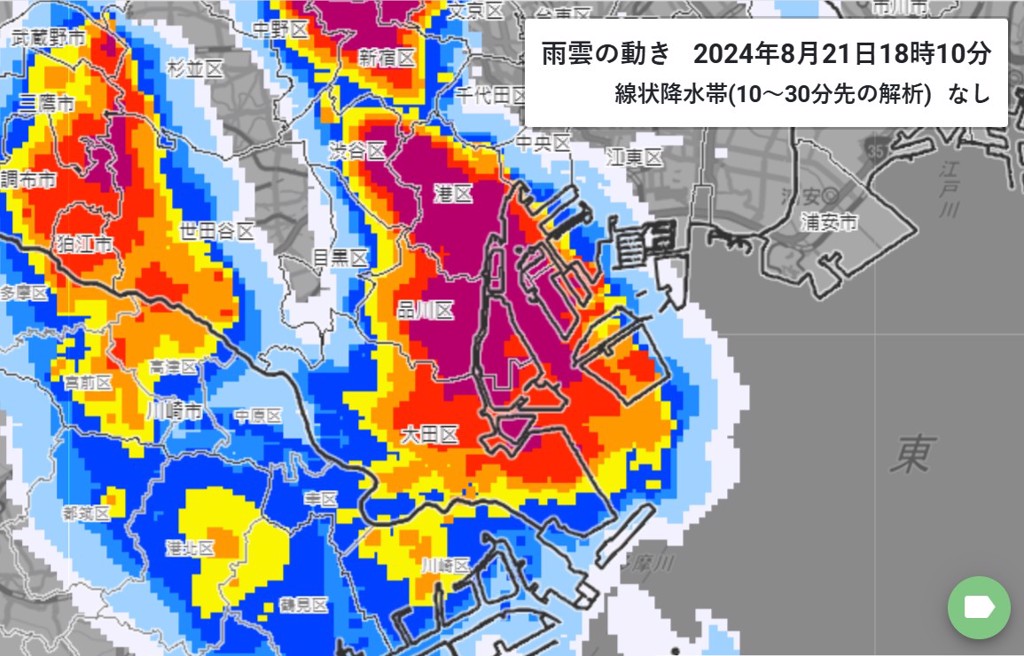 北時間晚間5時)左右,東京港區出現「紫爆」強降雨,品川區、澀谷區、文京區、新宿