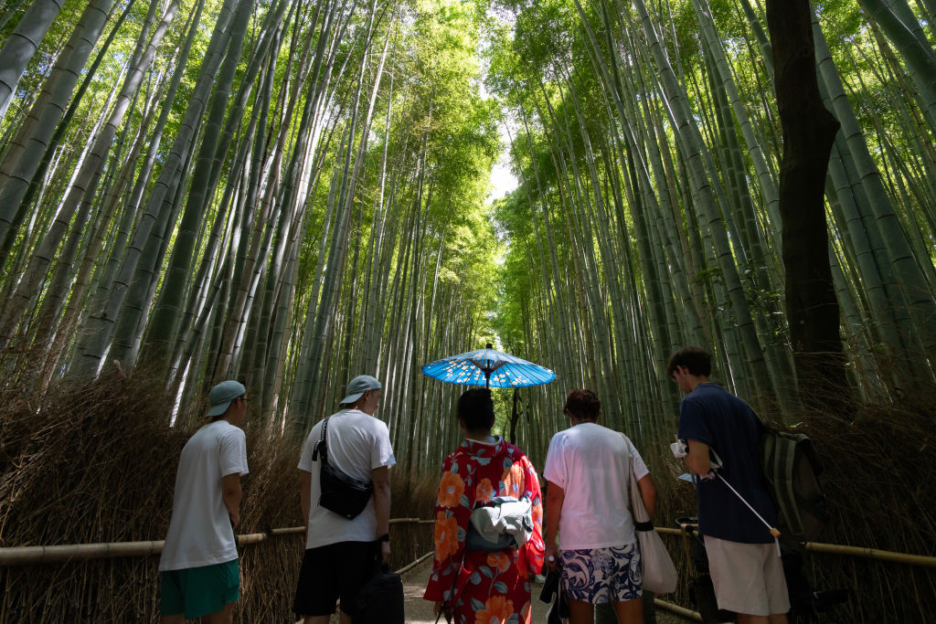 2024年8月8日,日本京都,遊客穿行於竹林小徑。(Tomohiro Ohsumi/Getty Images)