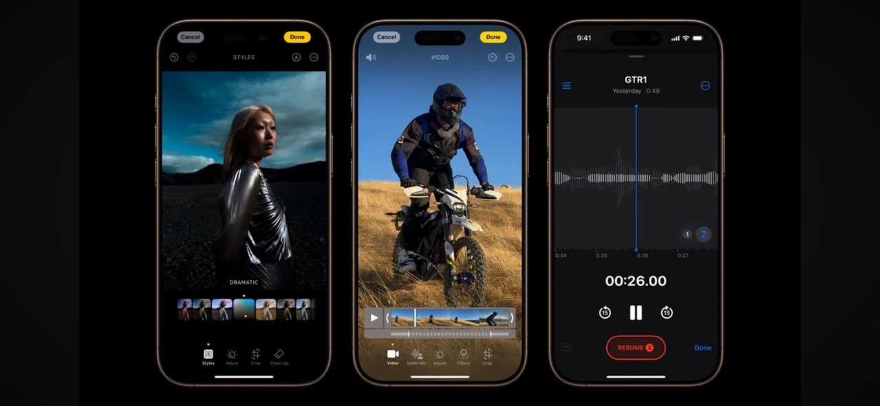 iPhone 16 Pro和iPhone 16 Pro Max也配置4個全新錄音室品質麥克風,可保留逼真的錄
