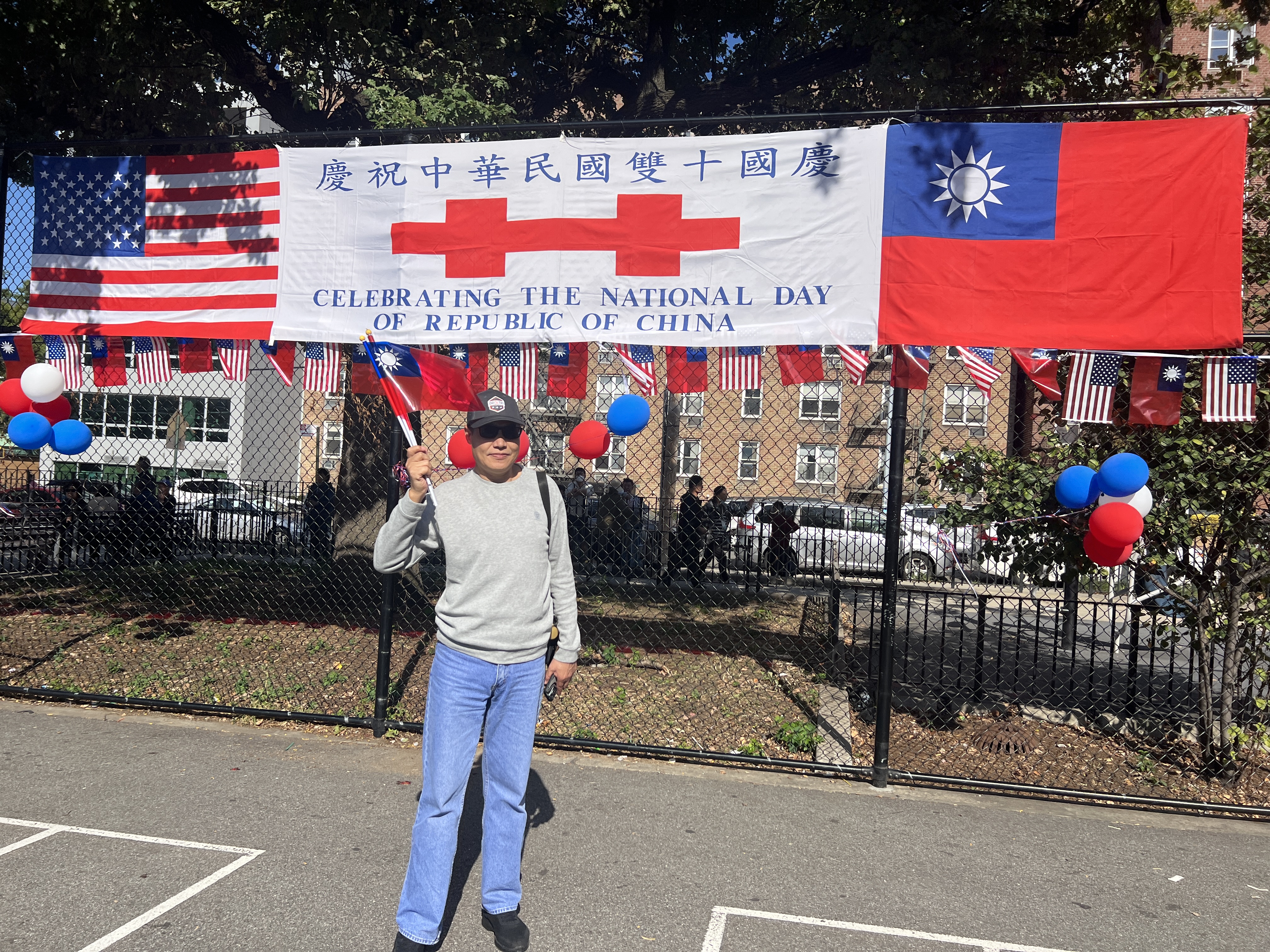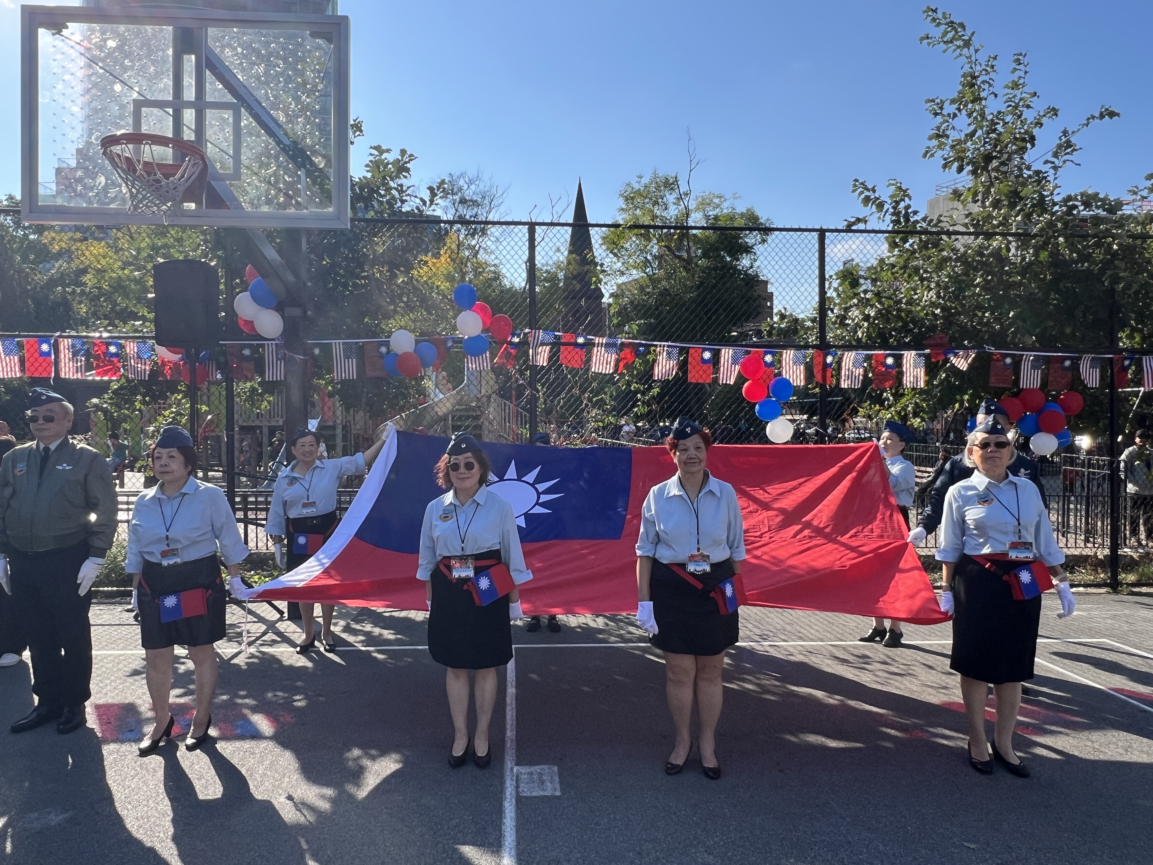 民國113年「雙十」節,數百人在法拉盛公立第20小學操場,表達熱愛中華民國之情。參