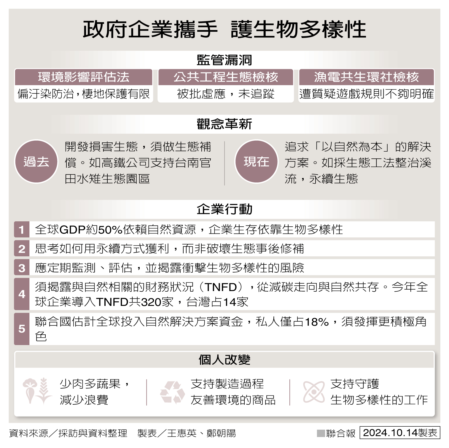政府企業攜手 護生物多樣性 製表/王惠英、鄭朝陽