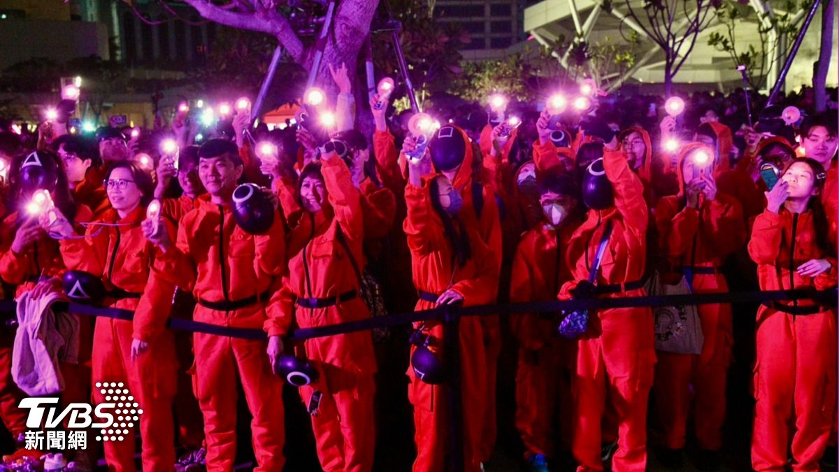 直擊/魷魚遊戲佔領愛河!「英熙娃娃」陰森點燈 11萬粉絲擠爆