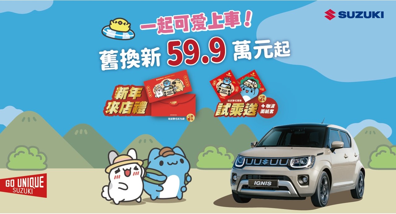 TAIWAN SUZUKI不只有準備了咖波可愛好禮恭候大駕,還針對新年的一月精心籌畫了「