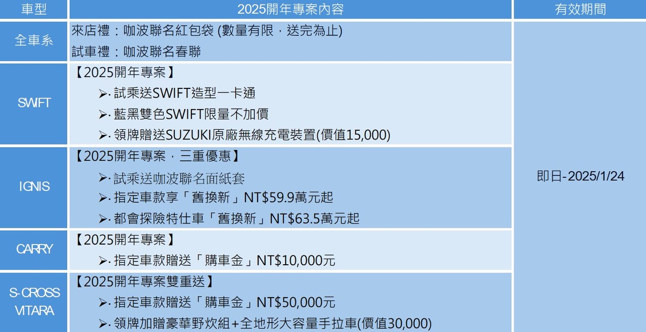 標題[新聞] 2025新年大福氣!SUZUKI開年專案起跑 來