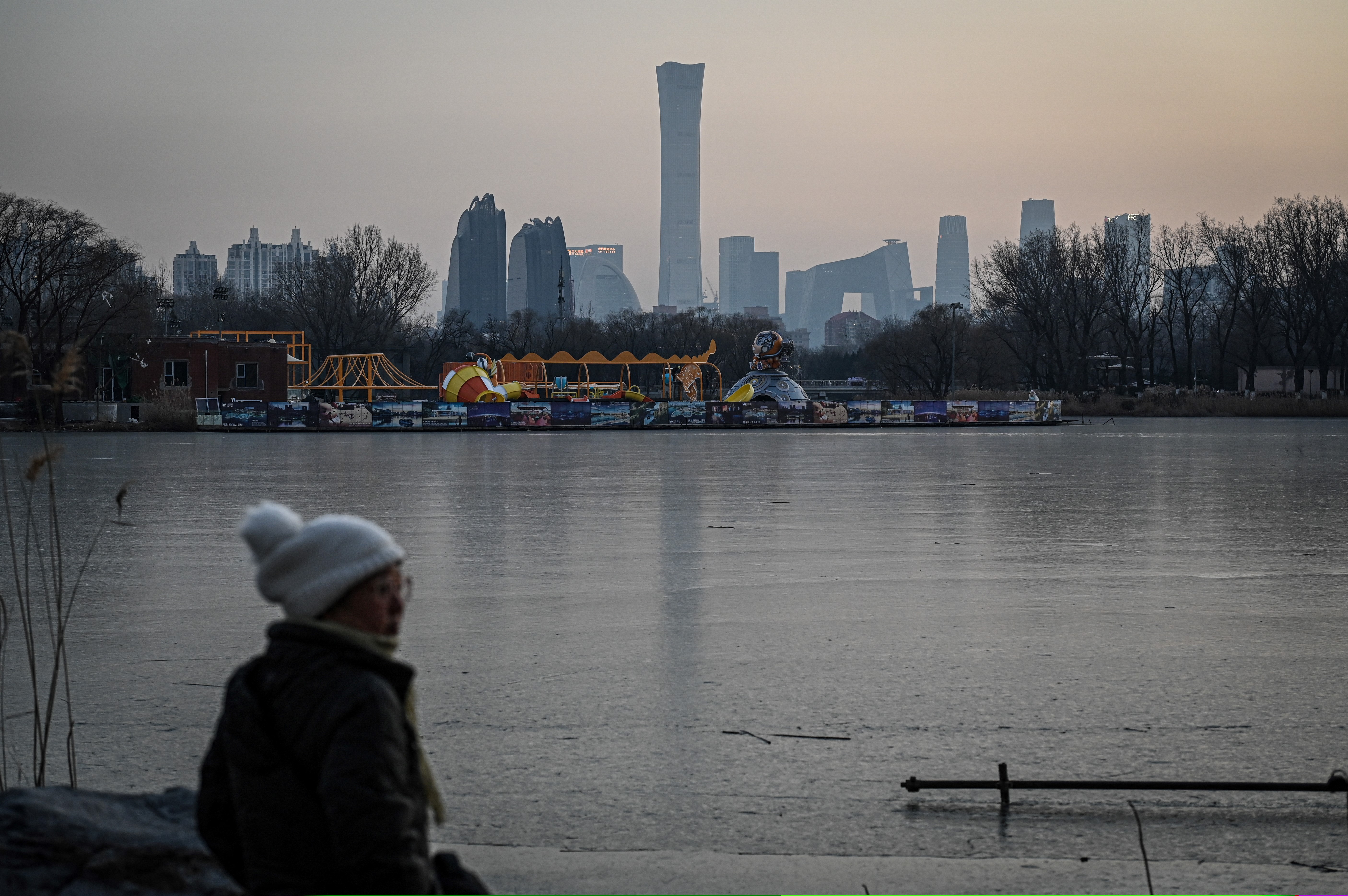 2024年12月29日,北京朝陽公園及城市天際線。(Jade Gao/AFP)