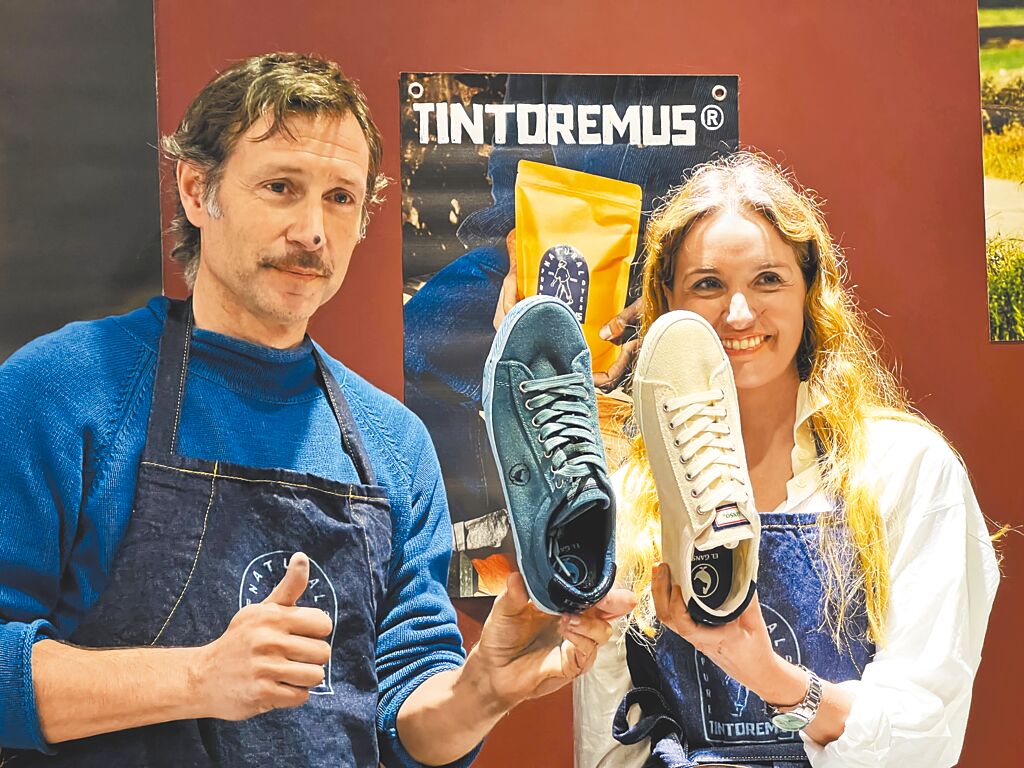 「Tintoremus」創辦人Clemente Cebrian(左)和Lola Lopez現場示範藍染技術,將白色