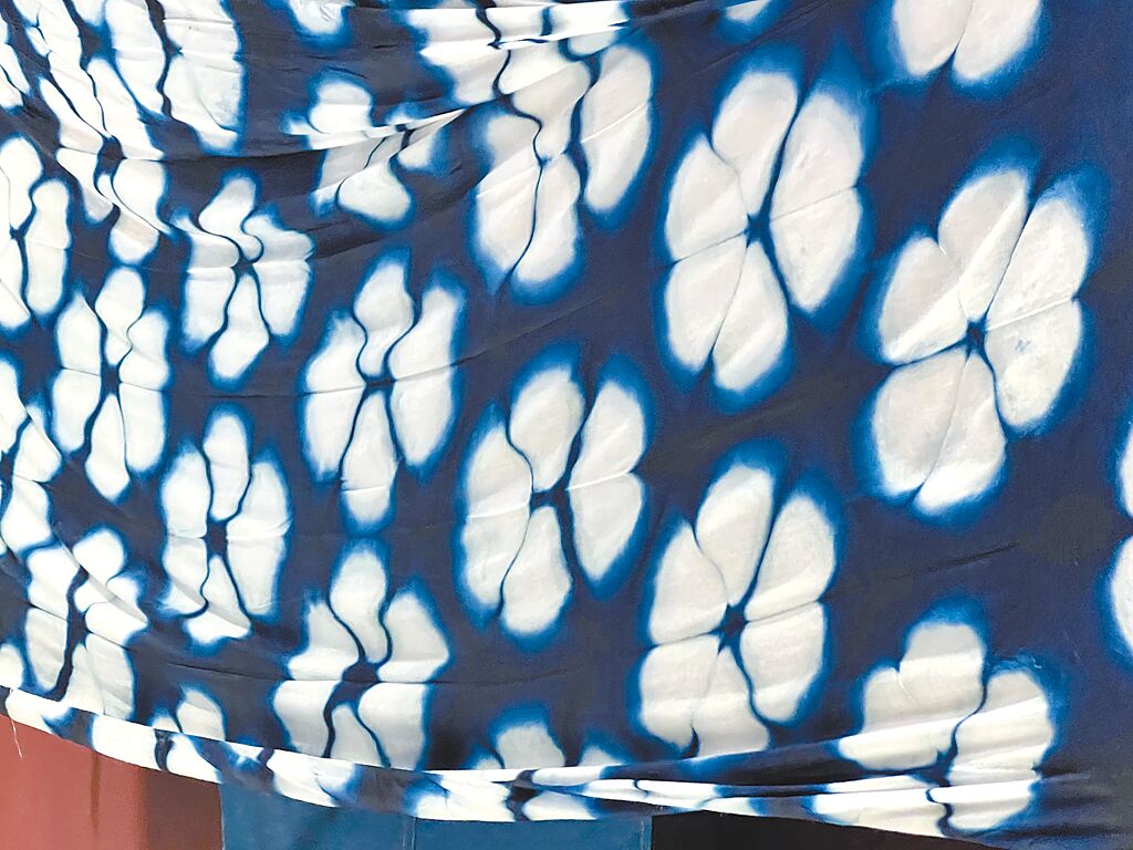 「太平藍」使用夾染的作品非常成功,白色部分為白布本身的顏色。(徐梓榕攝)