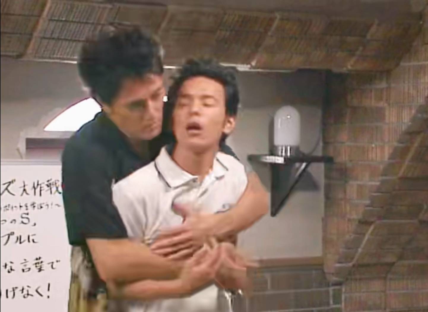 阿部寬對妻夫木聰從背後強行抱住