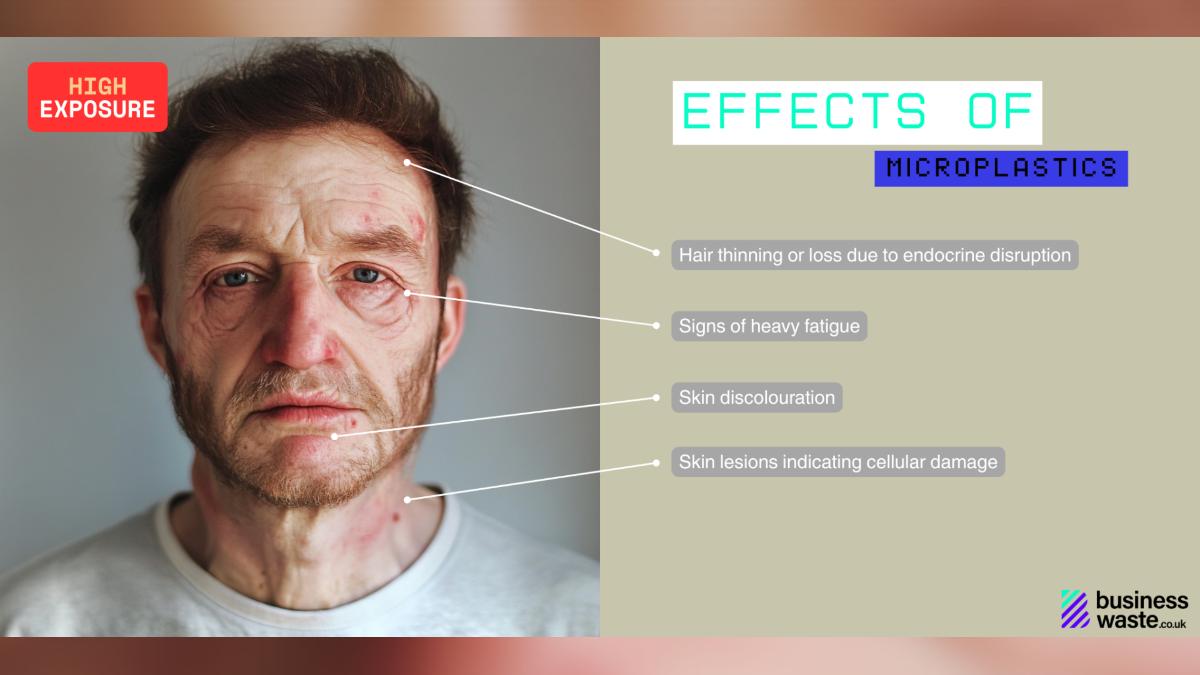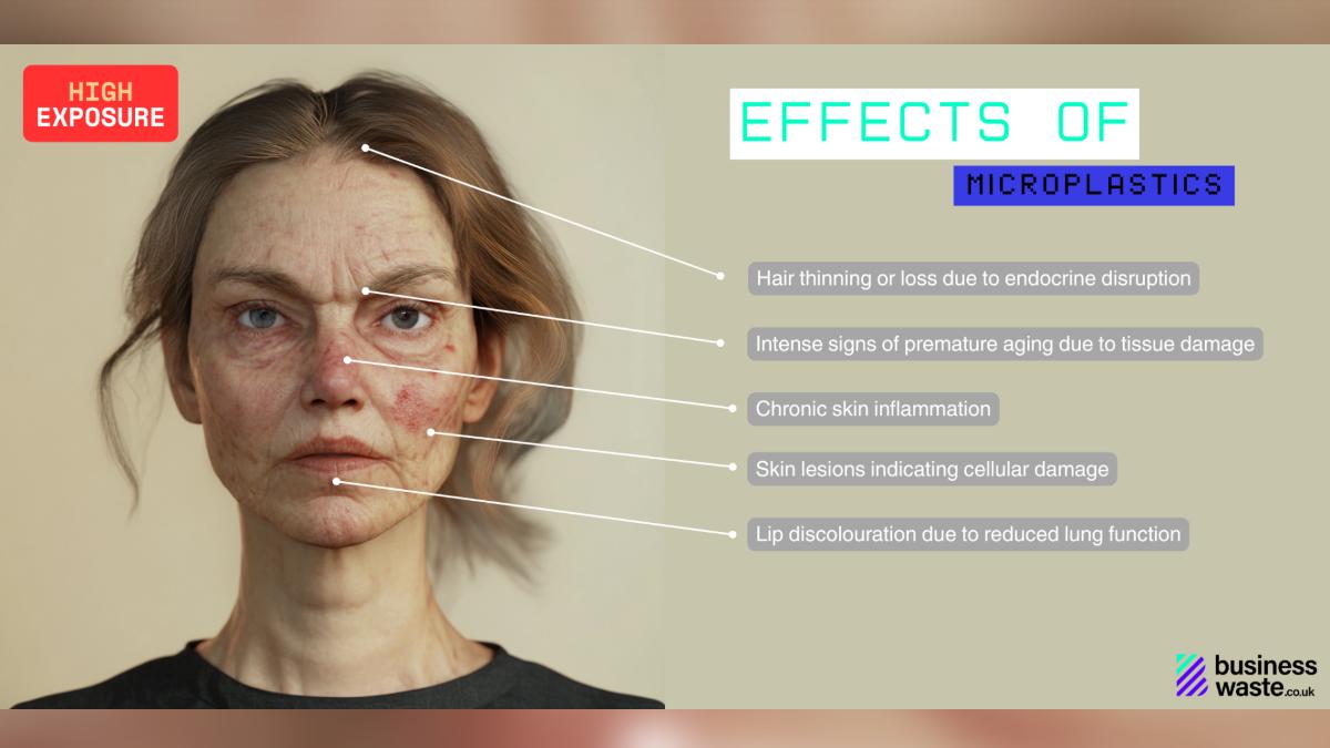 AI模擬暴露在高濃度塑膠微粒下的狀況。(圖/翻攝自 businesswaste.co.uk)