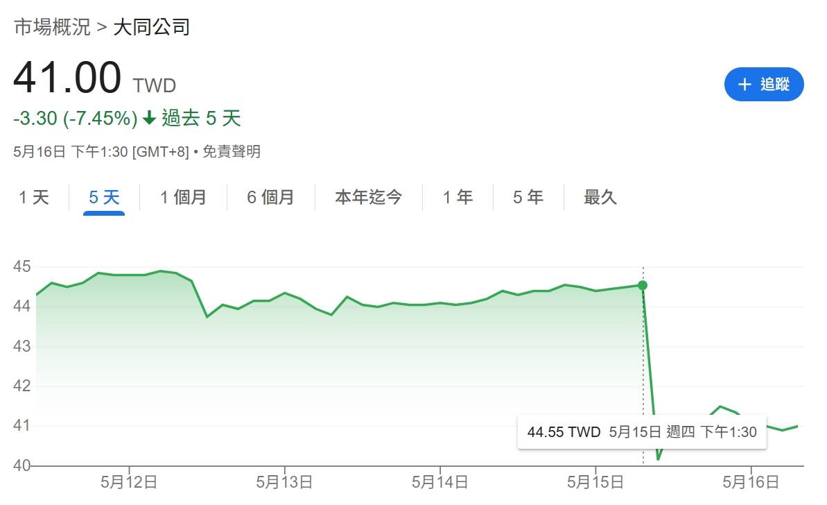 所以昨天大同開盤時瞬間跌停