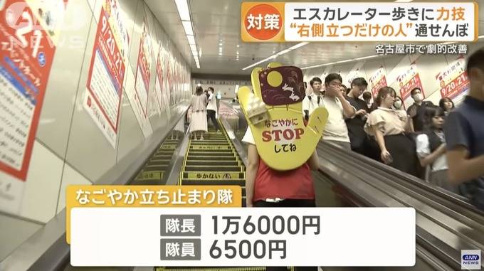 : 名古屋市雇用「只站在電扶梯右側的人」,作為禁止行走的對策,成效顯著