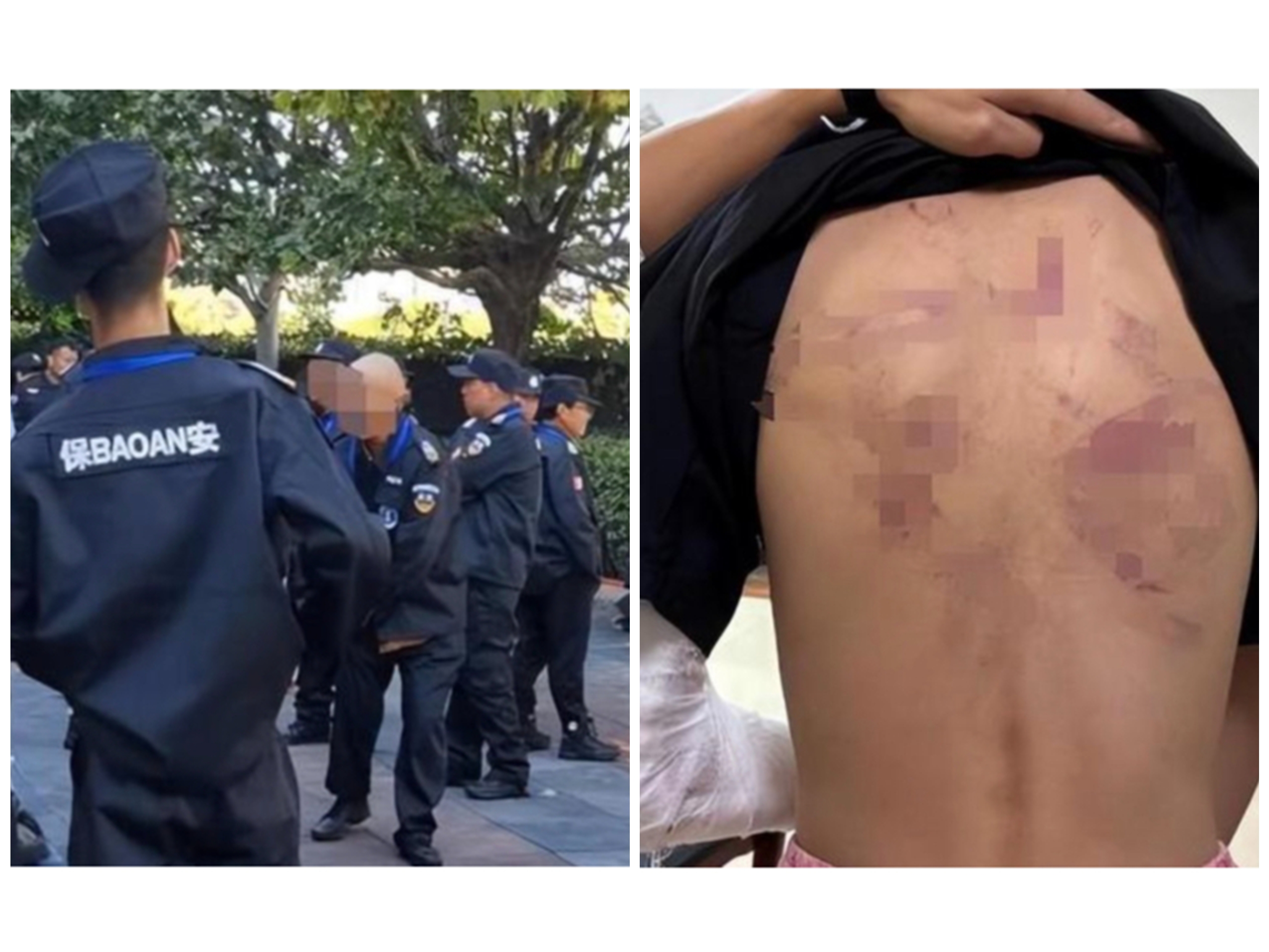 貿易廣場被9名保安輪番毆打,導致身體肋骨骨折及多處軟組織挫傷。消息在網上引發關