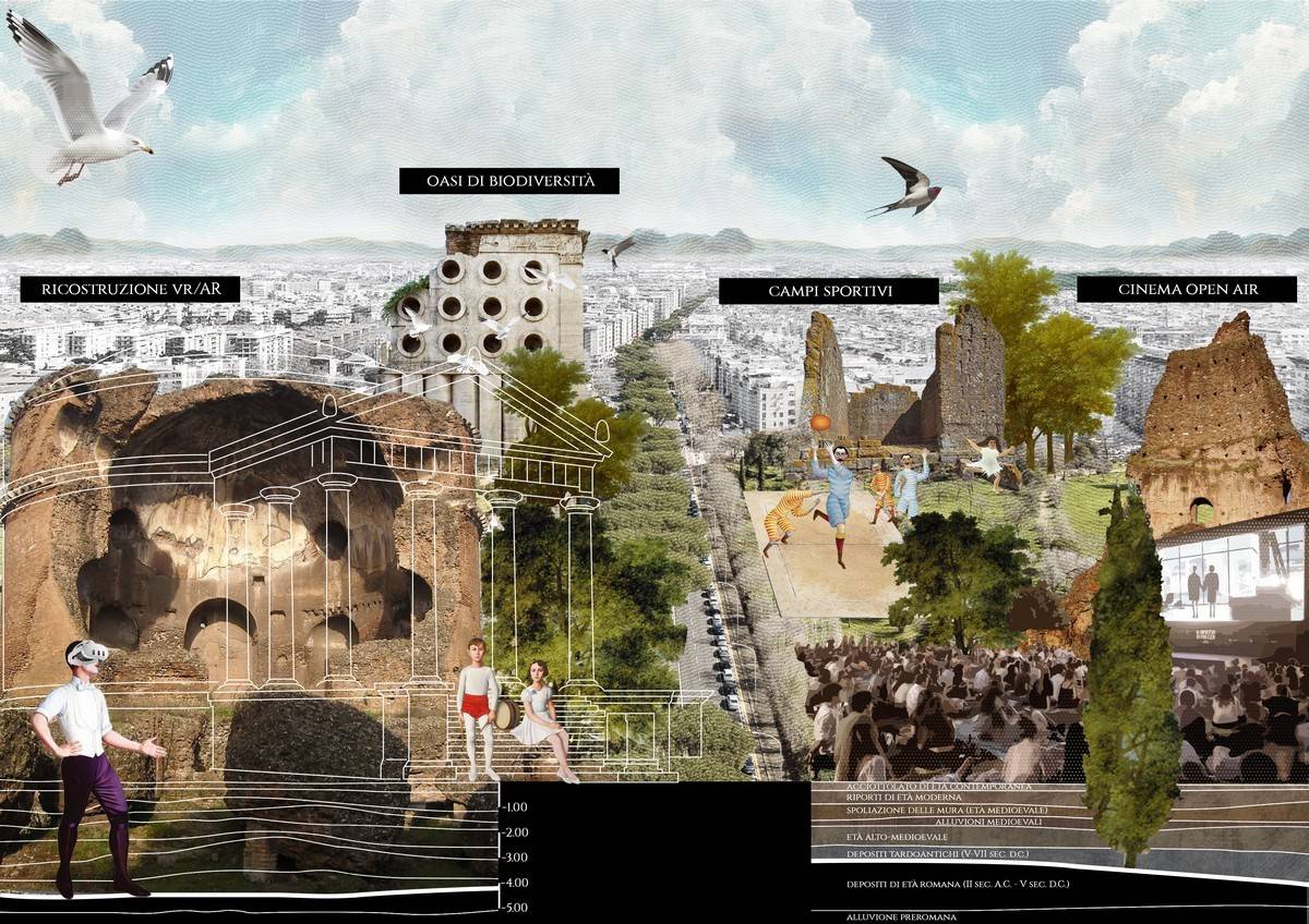 「羅馬050實驗室」提出的願景圖,將羅馬城市的考古遺跡推廣為文化、教育和經濟資源