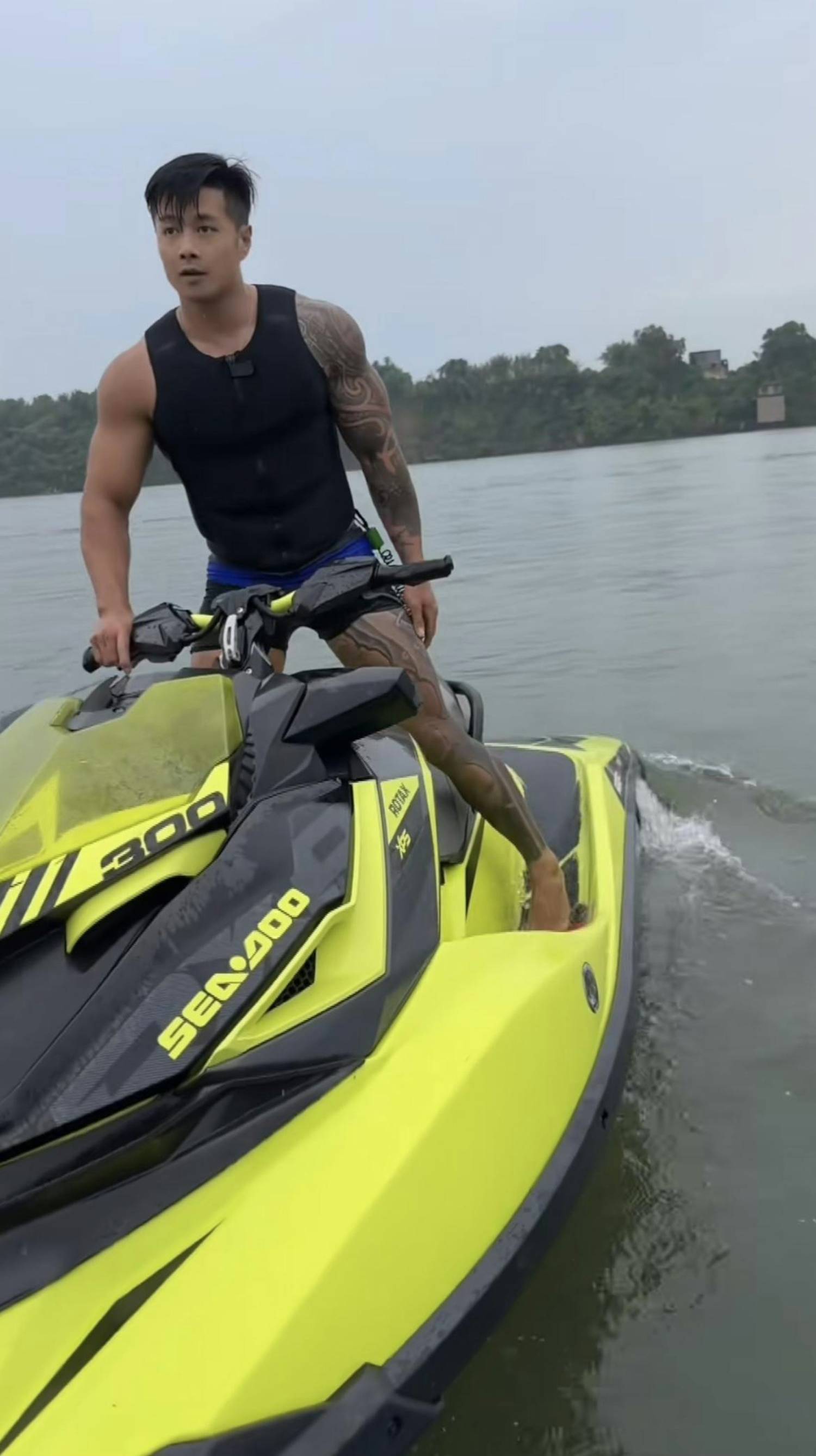 喜歡在長江騎水上摩托車做各種炫技動作