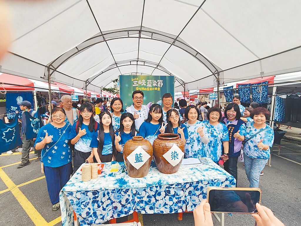 「2025三峽藍染節」5日登場,新北市副市長劉和然(後排右二)出席開幕儀式。(三峽