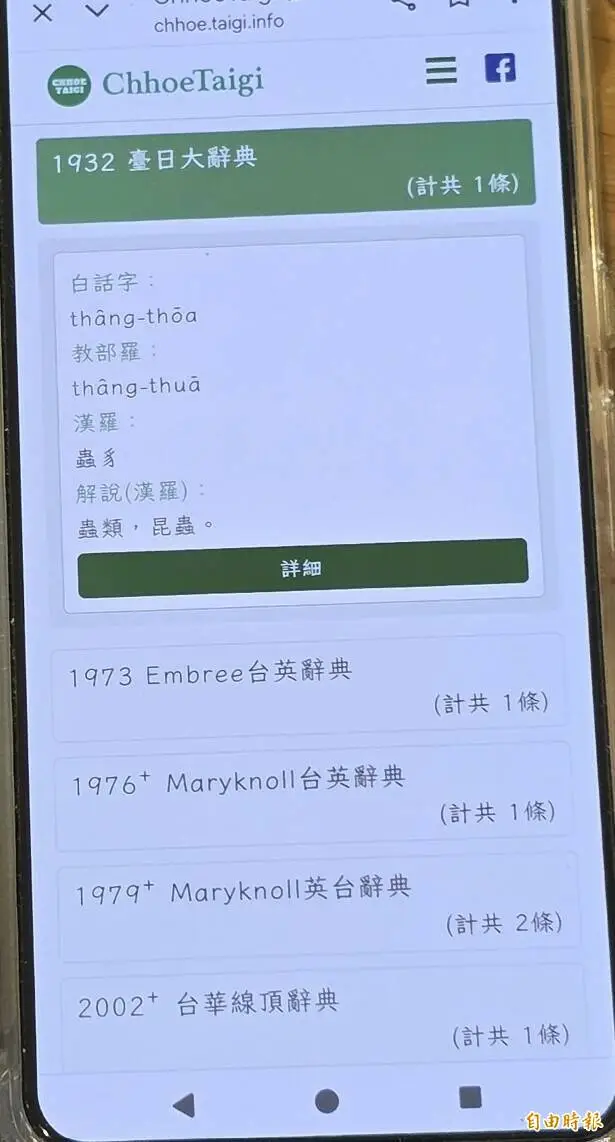 昆蟲的白話字「thâng-thoa」(記者洪瑞琴攝自《ChhoeTaigi 台語辭典》畫面)