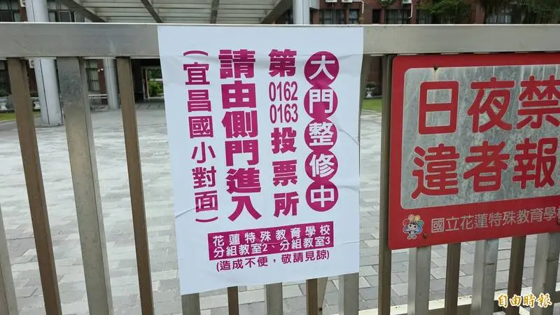: 花蓮162、163投開票所因為鐵門整修更改入口,告示牌做小小,很多民眾找不到繞來繞去