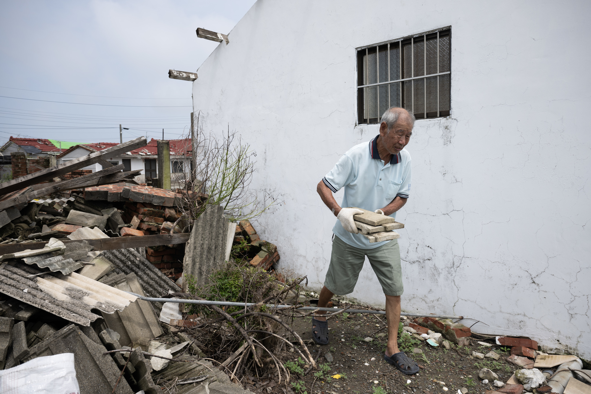 由於屋瓦嚴重缺料,有些民眾會去廢棄民宅、空屋撿拾地上尚稱完好的屋瓦,補到自家屋