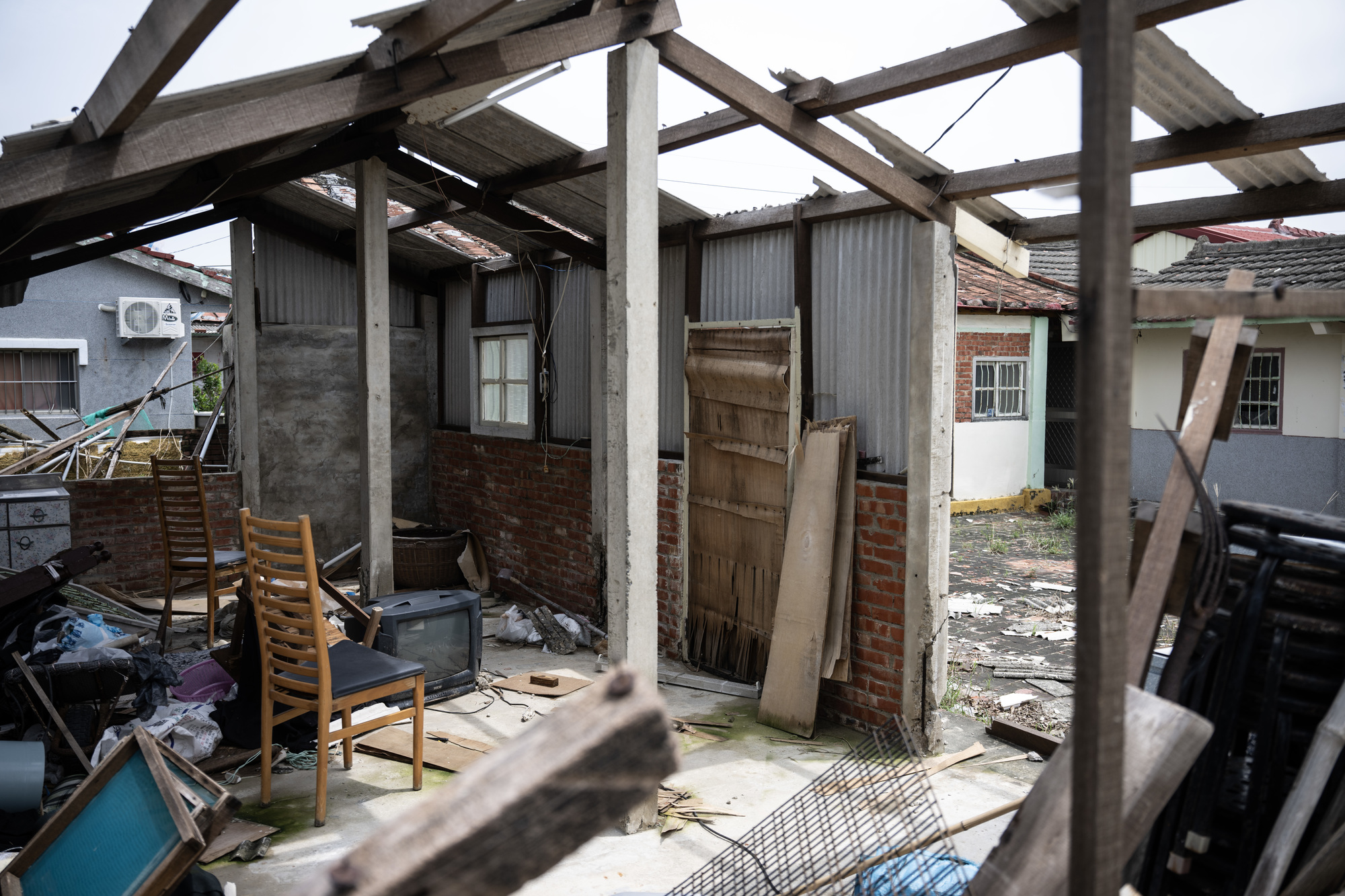 南市佳里區一間遭丹娜絲風災摧毀的民宅。(攝影/楊子磊)