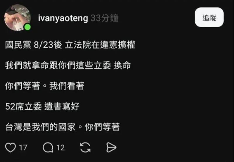 推 Warnerting: 台灣還有言論自由嗎 1.171.197.23 08/31 22:30