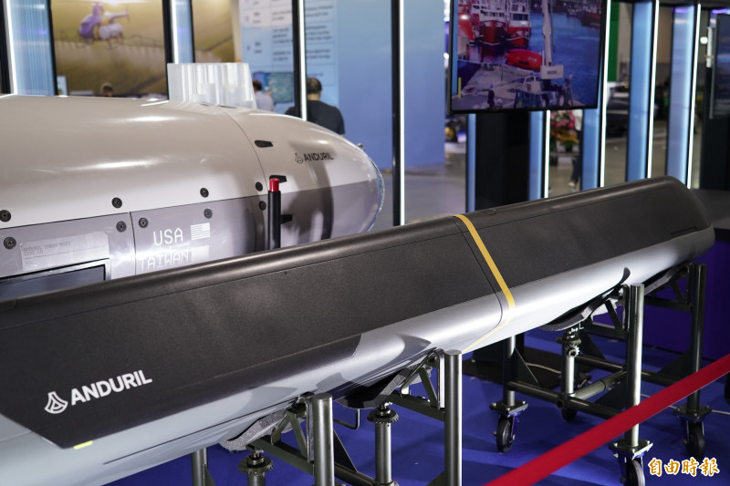 美國國防公司Anduril在本屆台北航太國防展聯名中科院展出的Dive-LD水下無人載具(左)