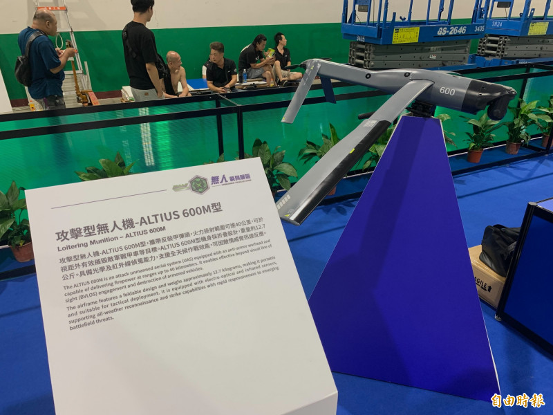ALTIUS 600M反裝甲攻擊無人機模型。(記者陳治程攝)