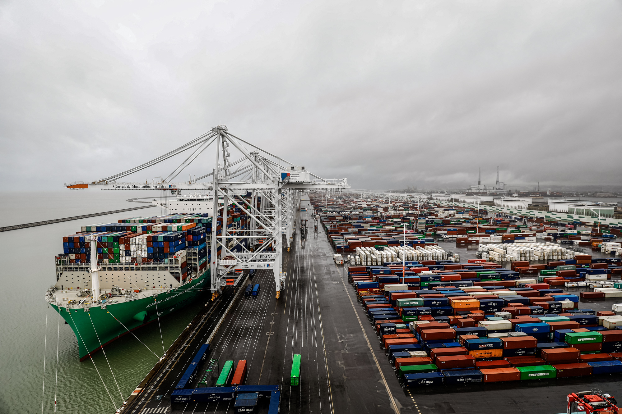 Jacques Saade)集裝箱船停靠在法國勒阿弗爾港(Le Havre)。達飛海運集團在中國上