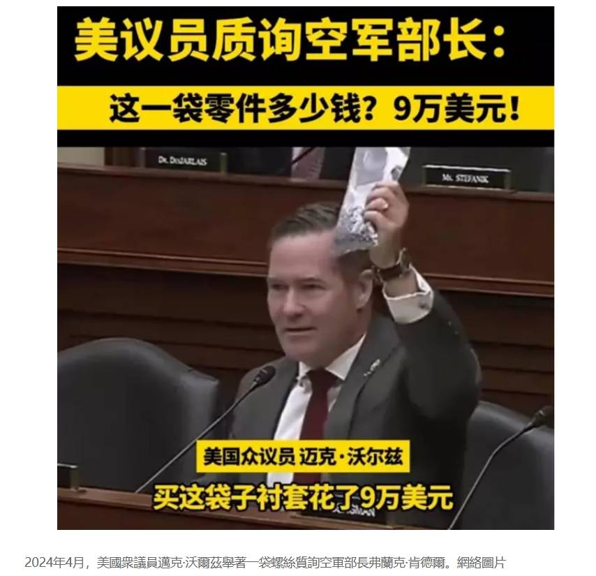 美國的美軍 一袋螺絲9萬美元採購費