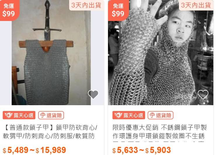 → pizzafan: 鎖子甲 隨便找要5000哦? 還有更便宜的嗎 118.171.218.57 10/18 13:53