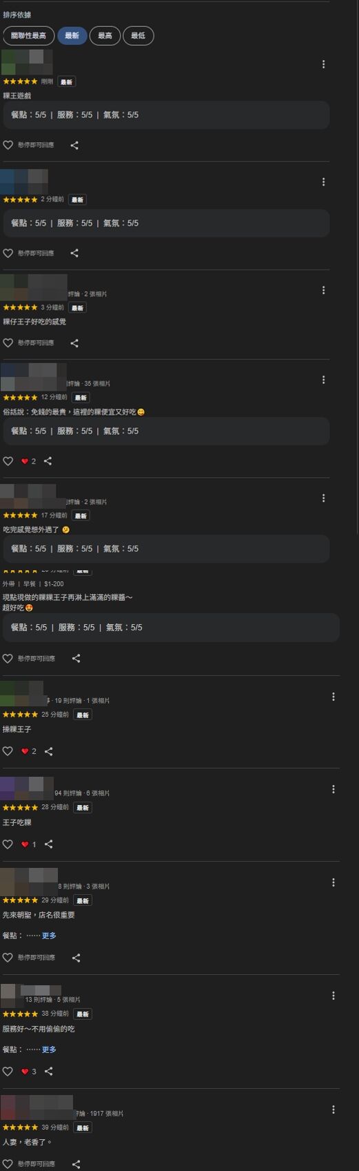 不少網友發現這間店以後,立即留下5星評論,並且附上「粿王遊戲」、「粿仔王子好吃