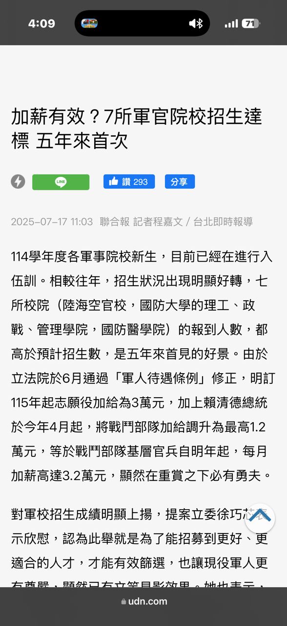 → neoa01: 府院封殺「志願役加給3萬」 軍方急禁以此 223.137.25.212 11/13 16:21