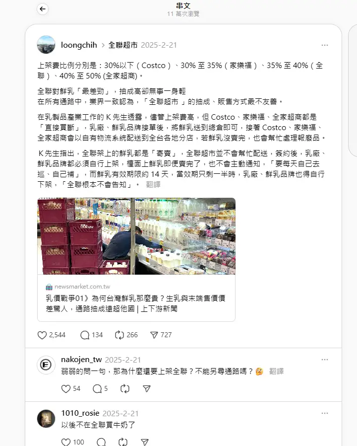 → ao5566: 牛奶那個講上架費也很好笑 你直接去經銷商 223.143.230.93 11/16 20:37