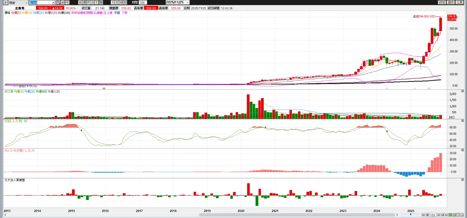 2025年 漲到594元