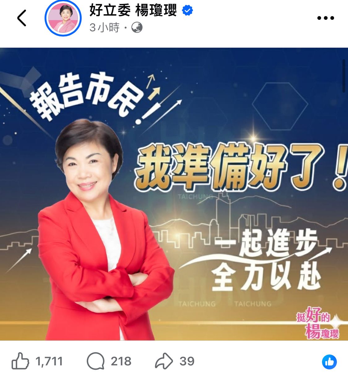 標題Re: [新聞]快訊/決戰江啟臣!楊瓊瓔宣布參選台中市長