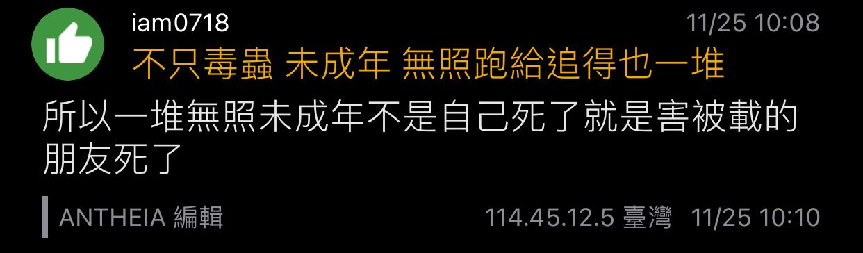 → ANTHEIA: 所以我之前就說了,無照害死自己的一對 114.45.7.224 12/01 11:23