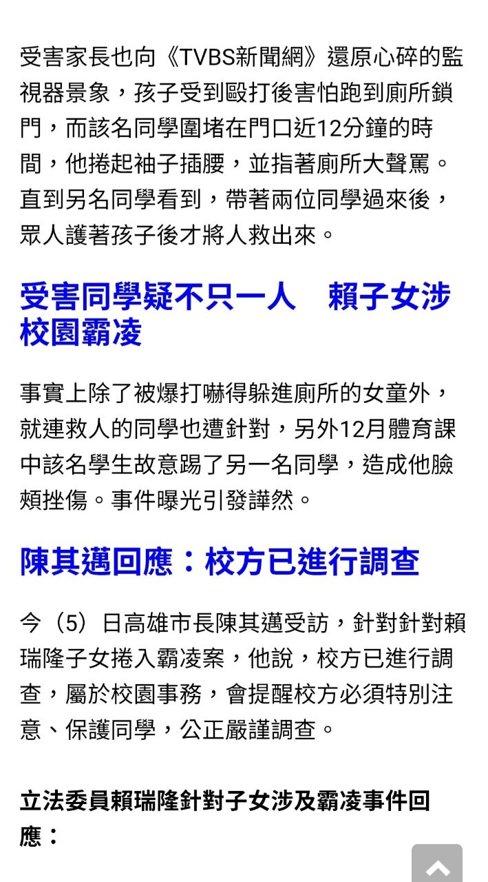 → coffee112: 他小孩 有權有勢有拳頭真的恐怖才8歲 218.164.143.42 12/07 16:32