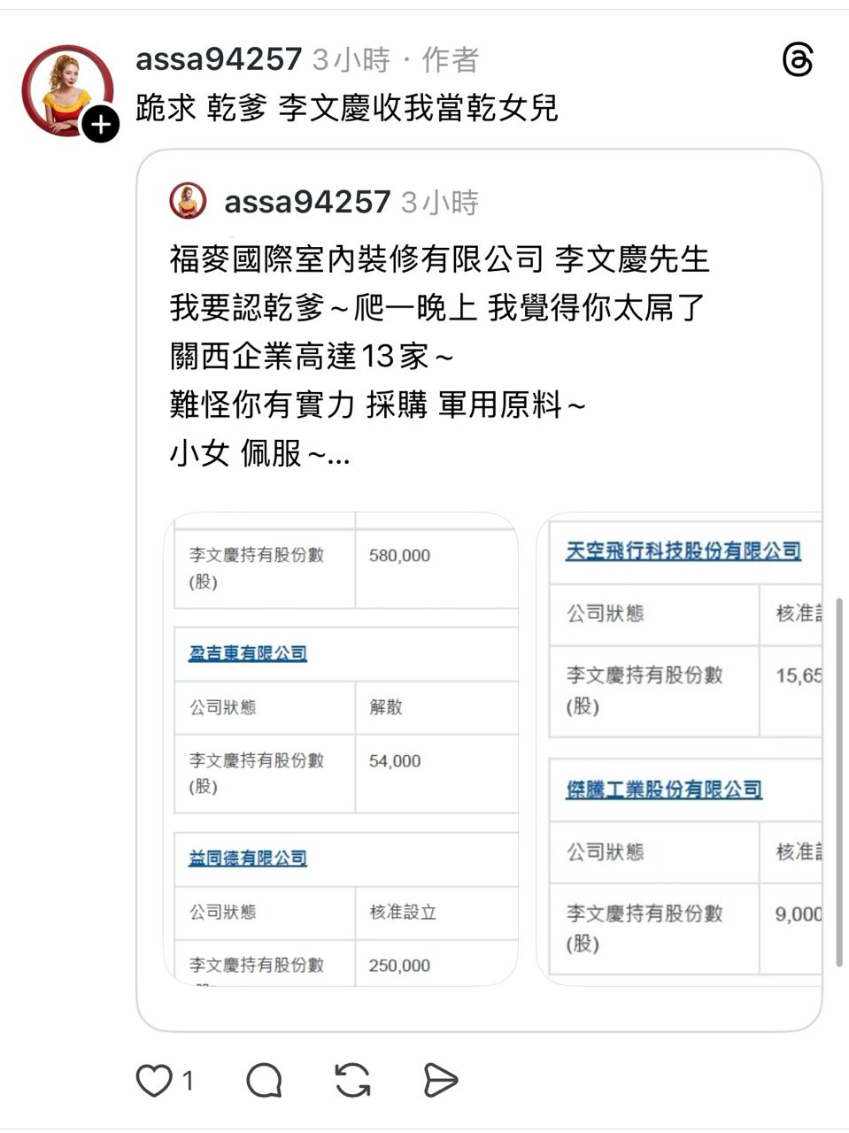 → a8521abcd: 騙人沒開過公司而已,那個本來就可以 42.70.109.74 12/11 09:23